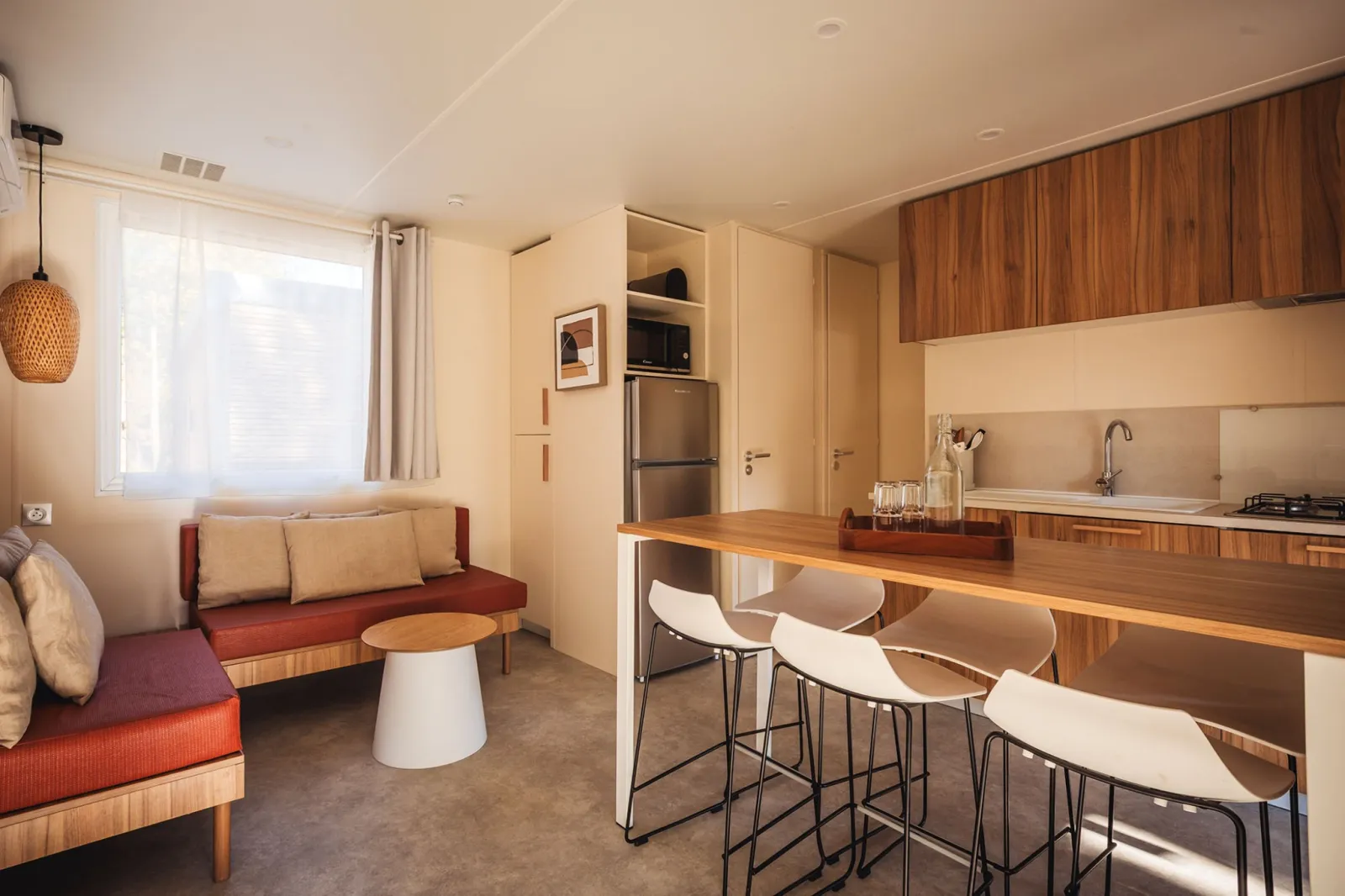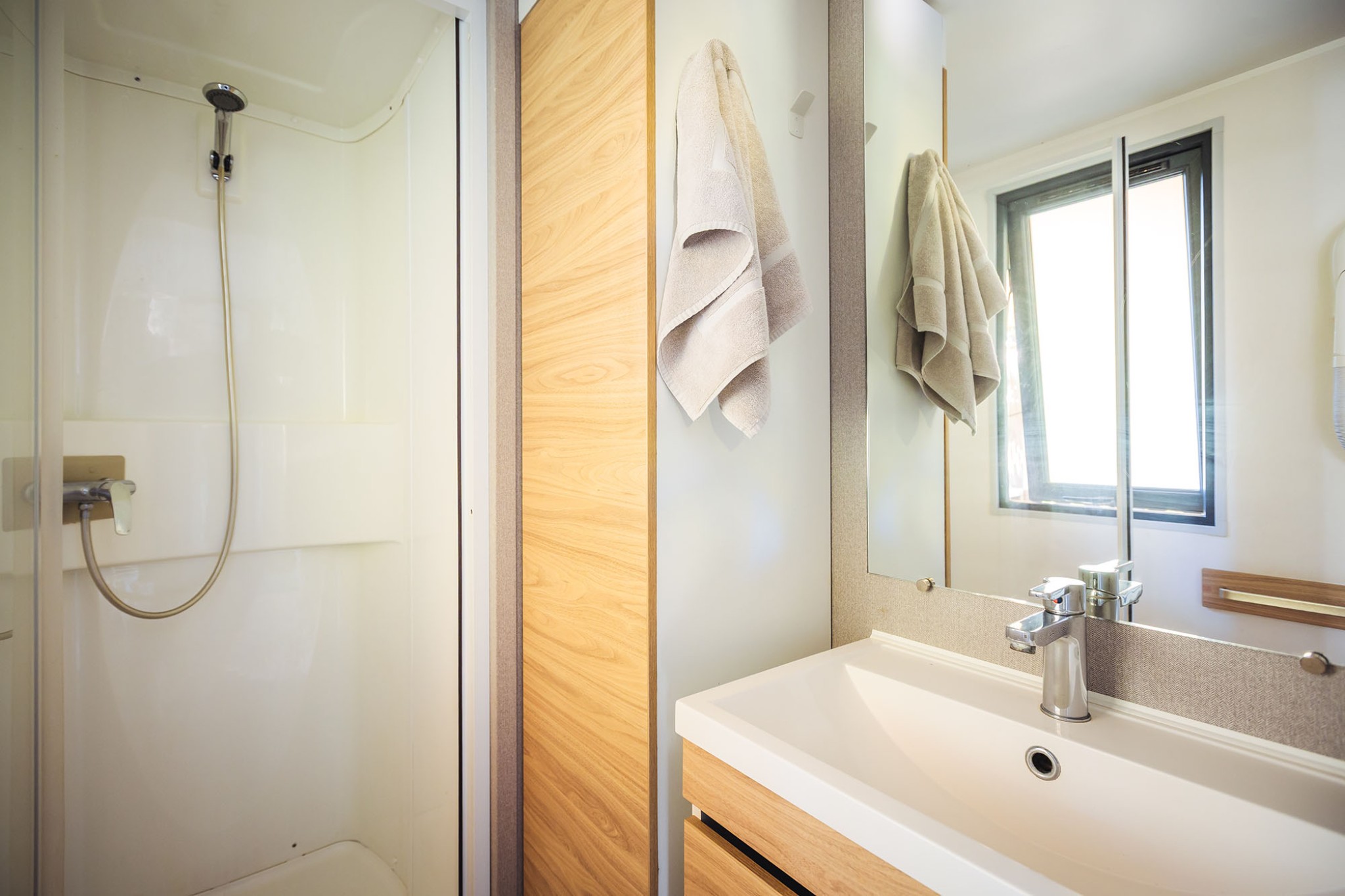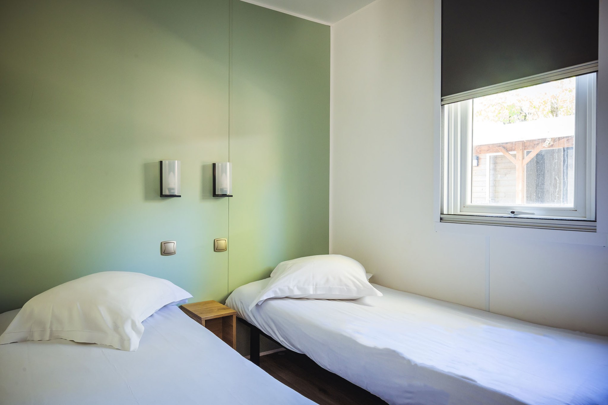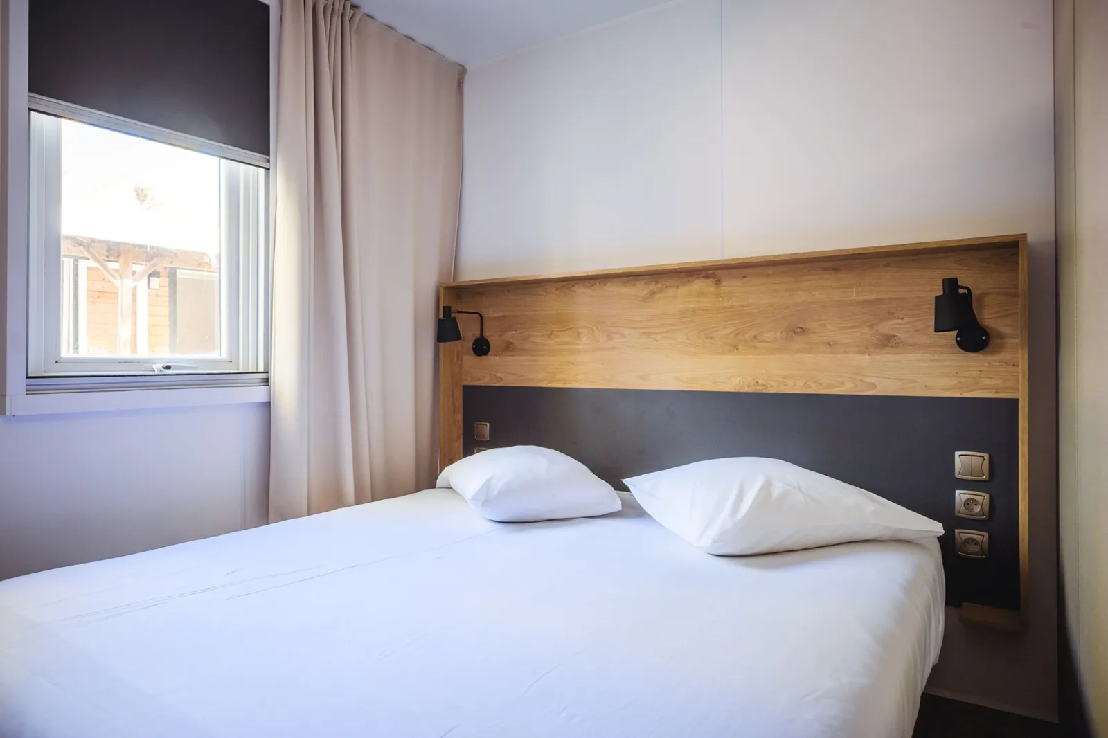 Lodge 2 slaapkamers premium is ons gloednieuwe model Nova by Prairies. Ontdek onze 36m2 van geluk met al het comfort dat u nodig heeft!
