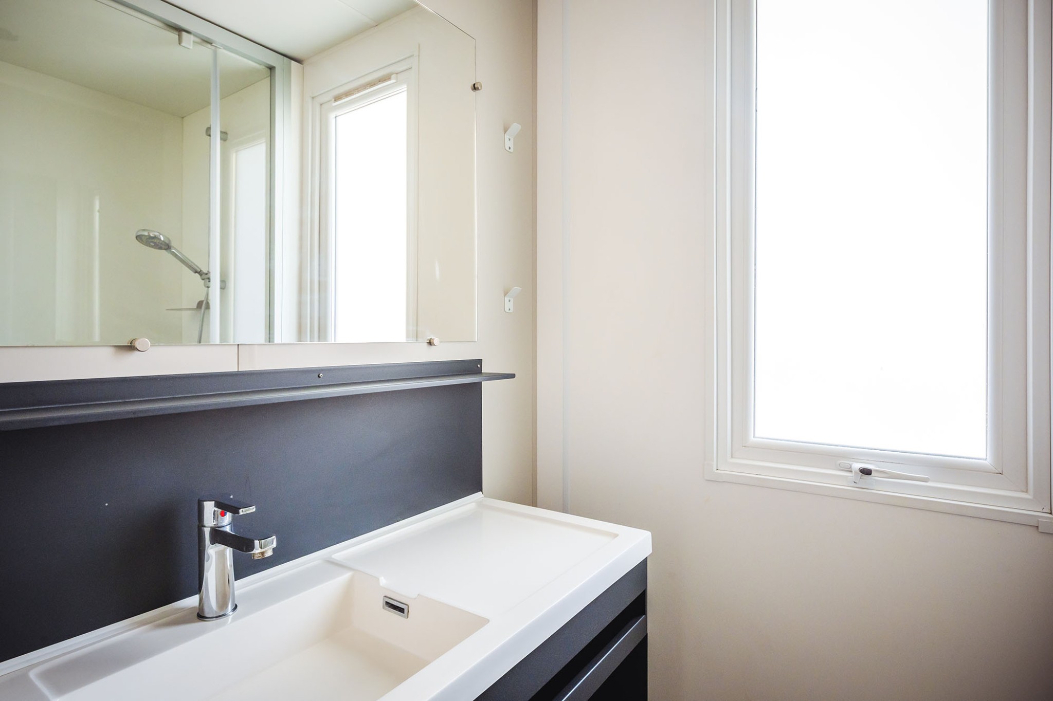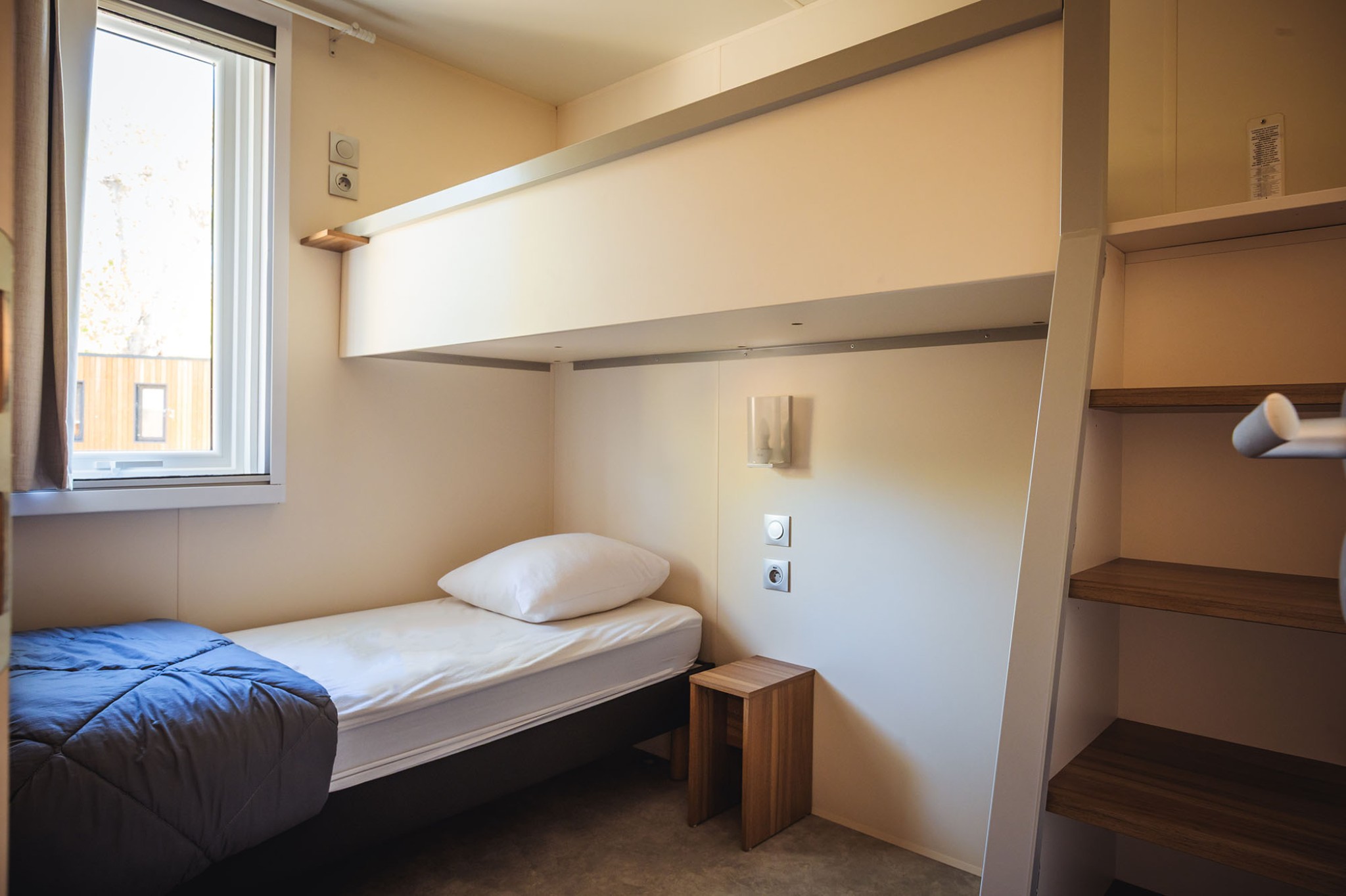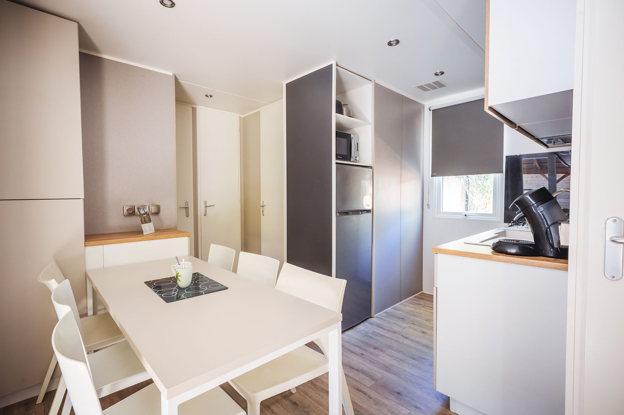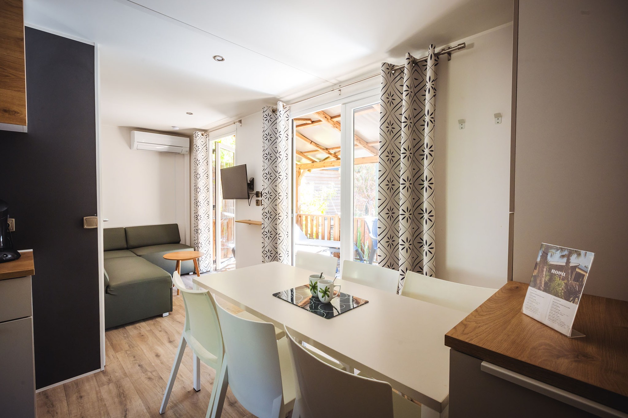 Lodge 2 slaapkamers premium is ons gloednieuwe model Nova by Prairies. Ontdek onze 36m2 van geluk met al het comfort dat u nodig heeft!