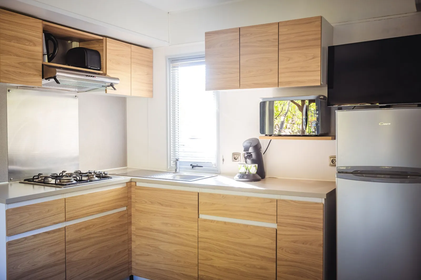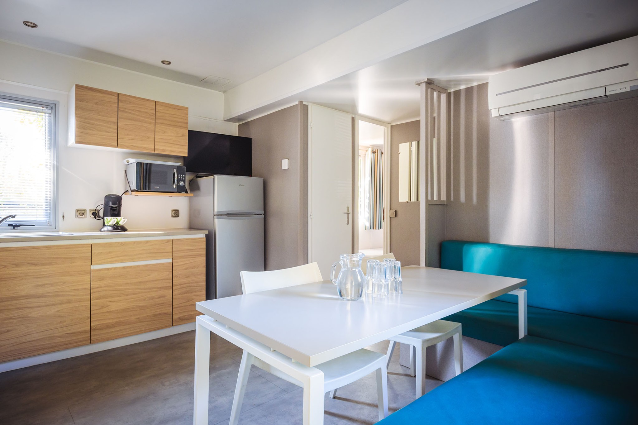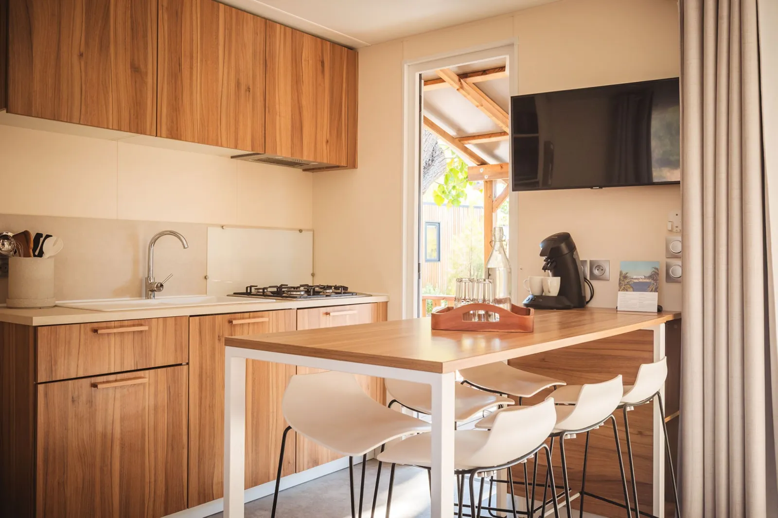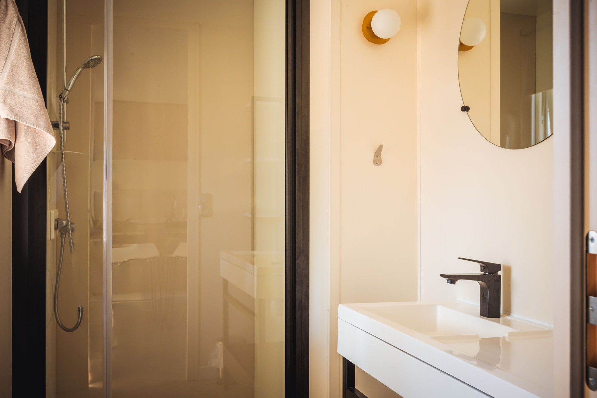 Lodge 2 slaapkamers premium is ons gloednieuwe model Nova by Prairies. Ontdek onze 36m2 van geluk met al het comfort dat u nodig heeft!